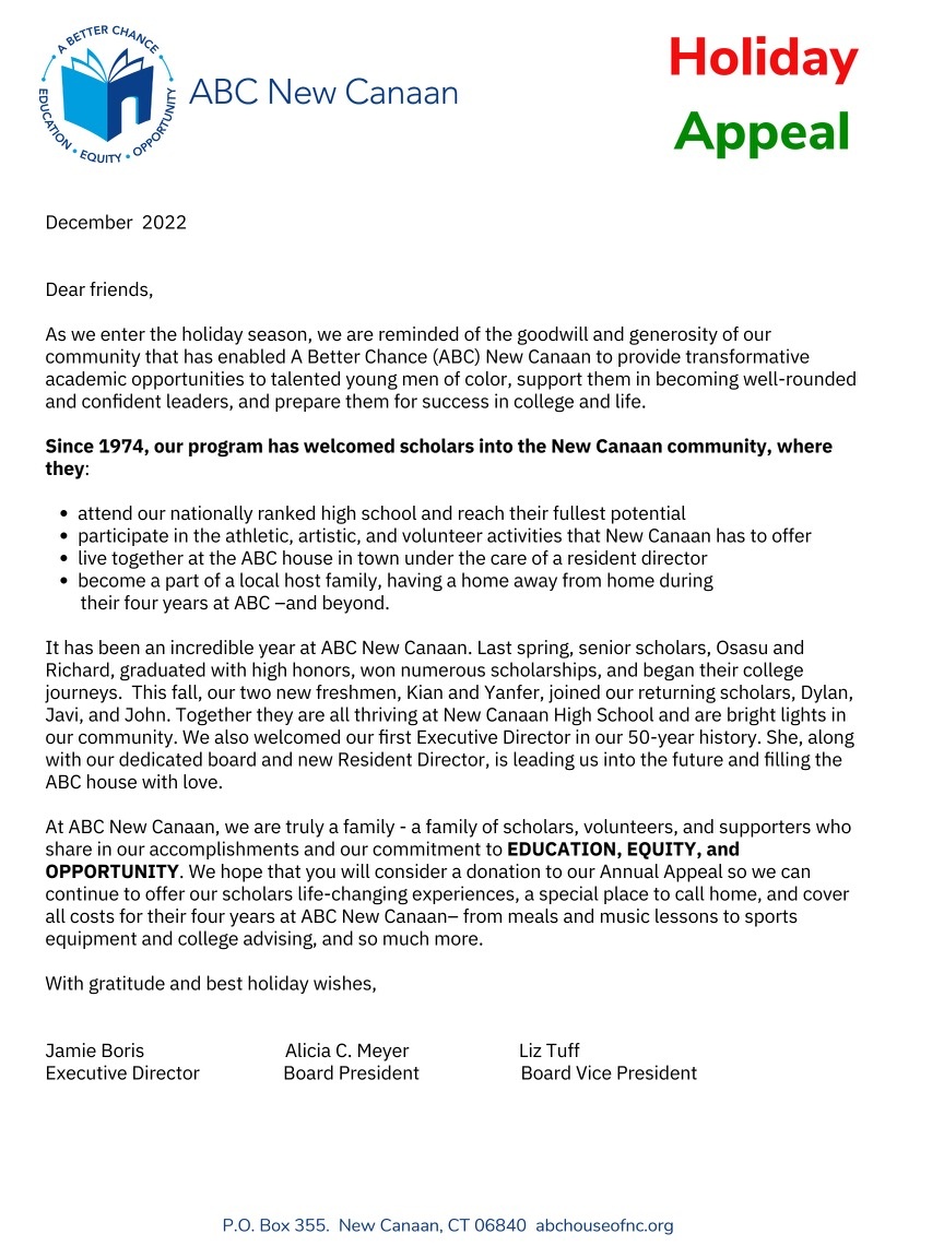 As we enter the holiday season, we are hoping you will consider a donation to our Annual Appeal so we can continue to offer our scholars life-changing experiences. Click here for more details.